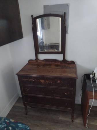 3 Drawer Dresser, at least 100yr old. Mirror is wavy. Dovetail drawers. Southern. More pictures of interested.