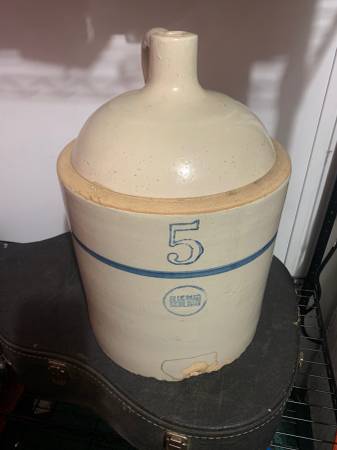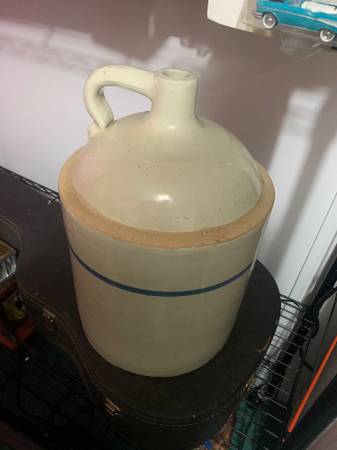5 gallon antique jug as is has a crack on the bottom $25 cash Phone Lil pan $25