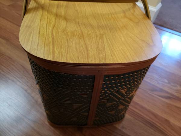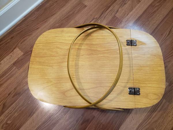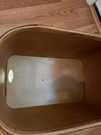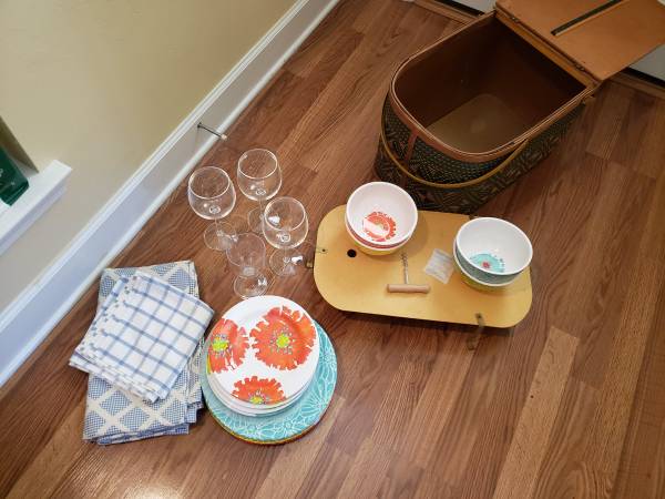 Large in excellent condition with metal handles. Includes some tableware, see photos. $50.00