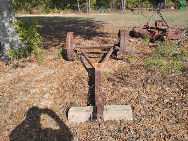 28 inch steel wagon wheels with axle and tongue still attached. 500.00