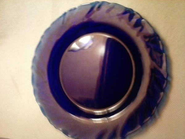 I am selling a like new 40 piece set of Blue Swirl Duralex Bormilio Rocco dinnerware for $100.00. Blue cobalt color. Pictures not very good. 8 dinner plates, 8 salad plates, 8 bread plates, 8 soup bowls and 8 cups. No chips. Very nice. Call Carl at show contact info