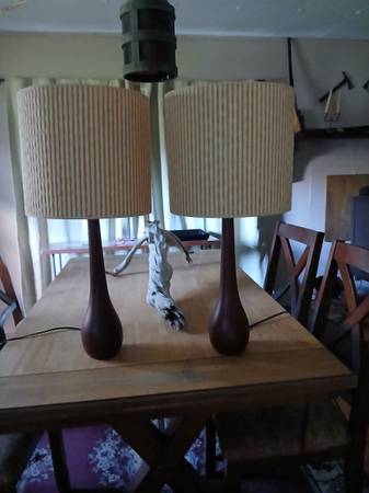 1960's to 1970's mid century Danish teak lamps with original shades. They are 25" tall. Great shape Especially for their age. Pick up or meet in Sopchoppy. 800 obo which is alot cheaper than what...