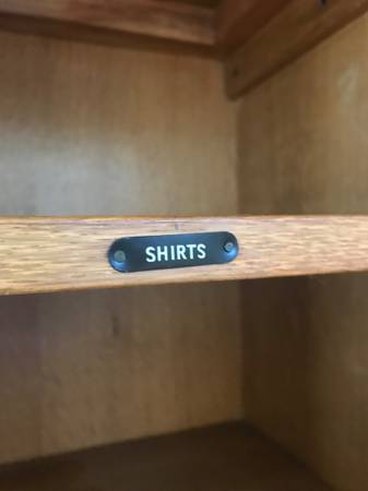 Unique metal labels on shelves - “socks,” “pj’s”, “shirts”, etc.
