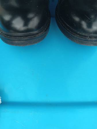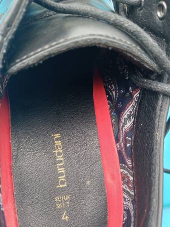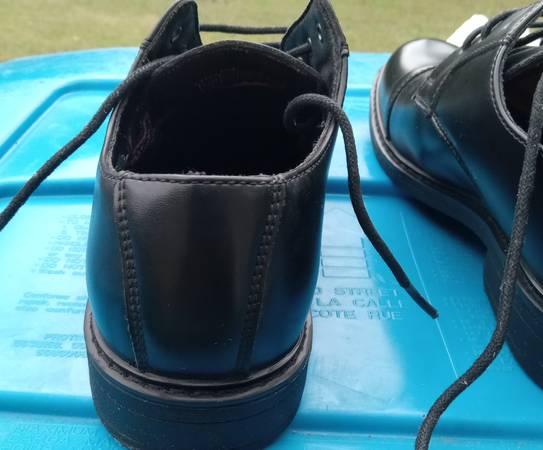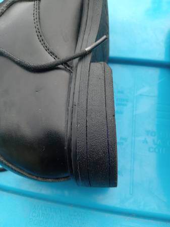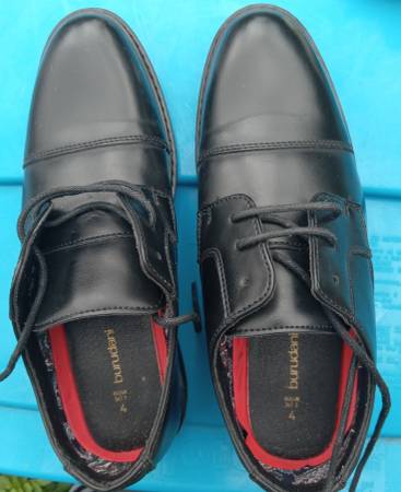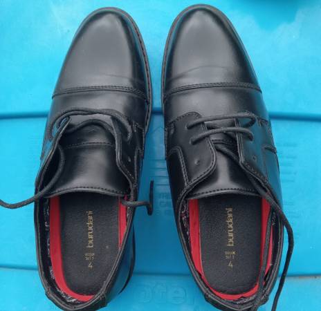 Leather boy shoes, gently used, it has a mark on the right side. Also on the left shoe on the bottom of the shoe has a small purple mark, but other than that, it's not in bad shape. Nice shoes.