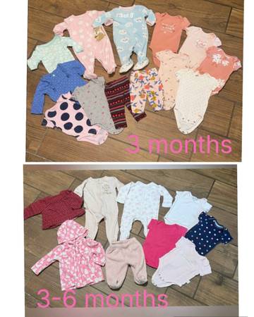 22 pieces Adorable baby girl clothing bundle Size 3 months Excellent condition Includes: 13 pieces 2 footed sleepers 9 onesies 2 pants Size 3-6 months Includes: 9 pieces 2 footed sleepers 4 onesies...