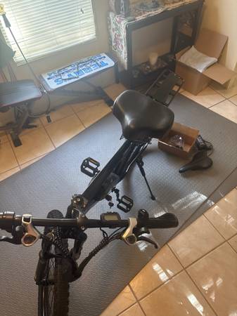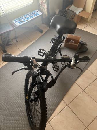 NEW. 21 speed electric mountain bike. I purchased this bike for a friend‘s daughter. I paid REI outdoors $200 to assemble it and add a wider, more comfortable seat and a rack and fender kit accessories. The bike sits too high for her, so they asked me to return it. REI was kind enough to throw away the box, that clearly stated in large lettering to save it in case you needed to return it. They would not accept the return in anything other than the original box, so I am stuck like Chuck! My loss is your game. $625 firm, cash only. Local pick up only. The bike is new and was only written by the two technicians at REI that are required to check and double check the gearing and brakes after assembly and before releasing the bike to the customer. specifications say the bike reaches 28 mph, which is the maximum that REI will work on for liability reasons. Cash in my hand to test ride it., You wreck it, you bought it. Includes charger and original seat if you have a preference for that style. Serious inquiries only. CHRISTMAS IS COMING! COME GET IT!