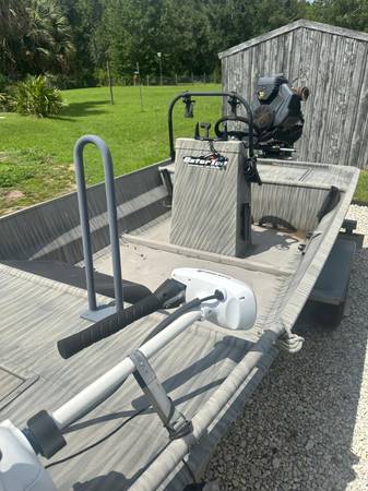 18'54" Gator Tail Extreme Series Surface Drive Boat and Trailer. Perfect condition. Many upgrades, including swivel seats, trolling motor, rod holders, and more. Ready to catch!