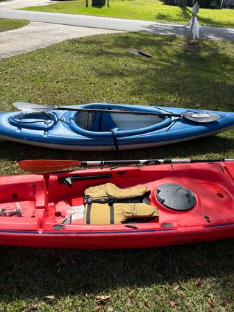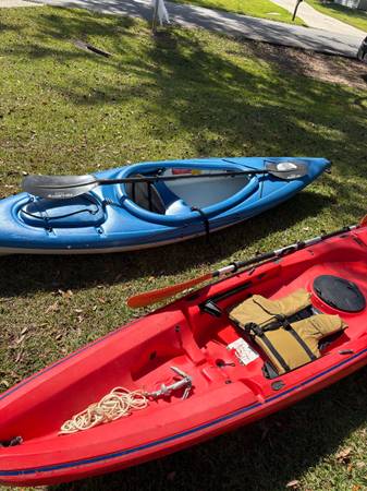 2 kayaks with universal roof rack, j channels for roof rack, 2 paddles, 1 life vest, 1 anchor. Ready to go! Nothing is wrong with them. They're a ton of fun!