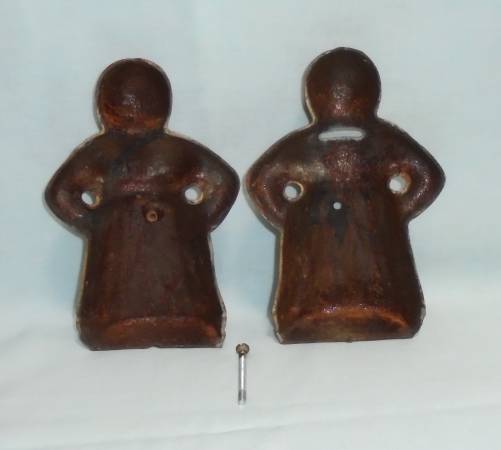 Mrs Aunt Jemima Hubley and Husband Uncle Moses Hubley Figure Vintage Cast Iron Coin Peggy Banks - With Some Paint Loss Aunt Jemima 7 1/2 Inches Tall Uncle Mose 7 3/4 Inches Tall Asking $1200 For Both