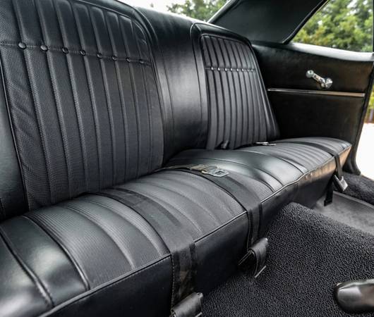 The wheels are S-style with chrome trim rings, and they are fitted with staggered-width 14” BFGoodrich white-letter tires that give the car an authentic muscle-era stance. The suspension, brakes, and drivetrain have been maintained and the car feels tight on the road.