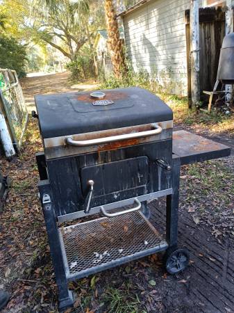 Assortment of grills. From $20.00 to $140.00. Weber charcoal grill/smoker. Camp grill LP gas grill with detachable griddle top. Small table top electric grill. Blackstone 2 burner griddle top grill with new cover. Grill / Blackstone needs to be heated up and cleaned, visible rust is not permanent.Smoker charcoal/ wood usage.