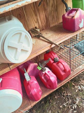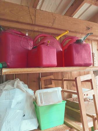 Large selection of 1 - 2 - 5 gallon gas containers. All red plastic. Most have new pour spouts. $ 3.00 for 1 gallon, $5.00 for 2 gallon. $12.00 for 5 gallon, have a bout 25 total Also have a 9...