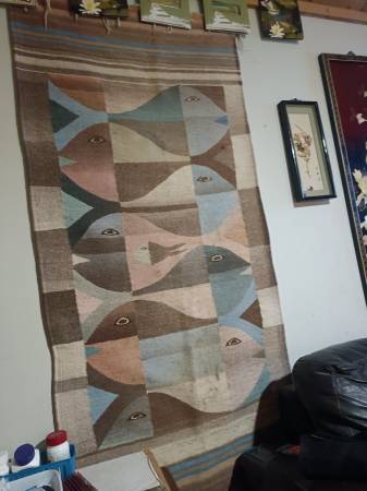 Approximately 28 inch by 64 inch Woven Wool Fish themed rugs. Are vintage rugs, Have had them for over 30 years now. In very very good condition, no fading. $120.00 or $225.00 for both In very very...