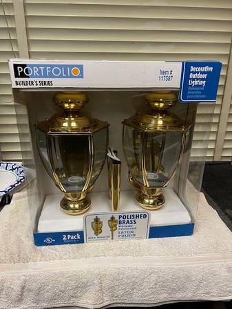Set of Decorative Outdoor Brass lighting Paid $110 asking $70 Use with or with Tail.