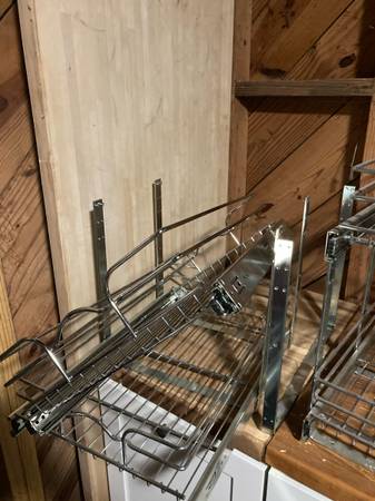 Three rev-a-shelf metal two layer cabinet pullout shelves 15” 18” 21”-fits 24” cabinet Redid my kitchen and no longer need. Dusty but fully functional and work great. $150...