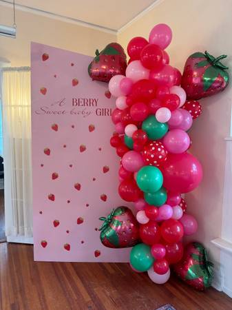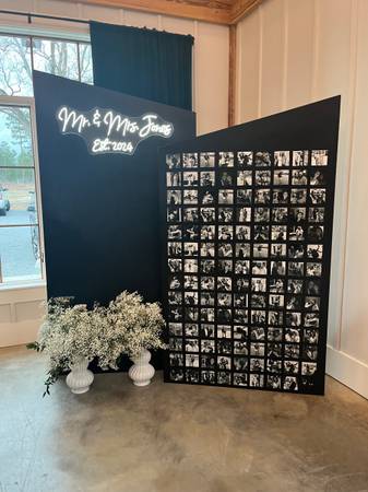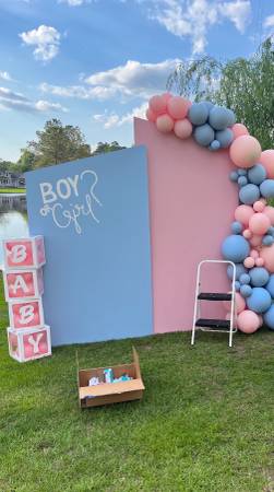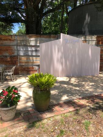 Three sections of backdrops. They have been used for multiple weddings, gender reveals and baby birthday parties. The backdrops are made out of 1/2” MDF boards. Supports can easily be removed for better storage and are numbered for easy installation.