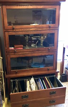 In addition, there is a beautifully built (optional) Barrister's bookcase with a lateral file/drawer on the bottom.