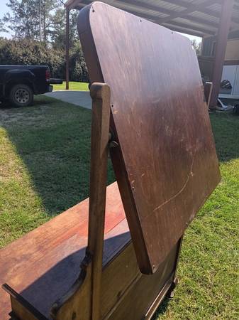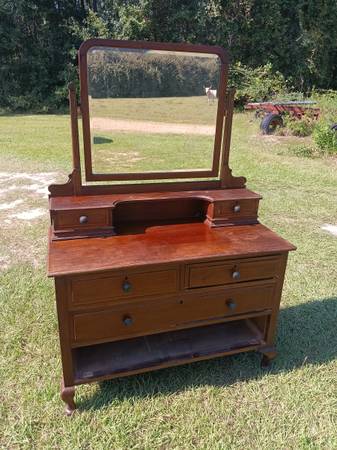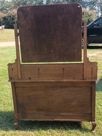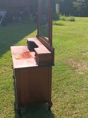 Solid wood dresser with tilt mirror. Missing 1 drawer and 2 other are missing part of front - see pictures. $80. Size: 29" tall, 61" to the top of mirror, 42.5" long, 20.5" deep. Located in...