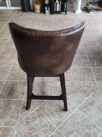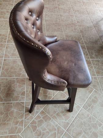 BEAUITFUL Holmes Tufted high-back 360 swivel counter-height barstools. Brand New. Two already assembled and two still in boxes. Med brown with 4-sided footrest. $800.00. Four Barstools. 400 pounds weight limit. Chairs weight 29 lbs each. Top to bottom 40 inches, 19w x 16d x26h ..Serious inquiries ONLY.. show contact info