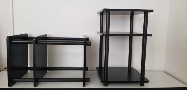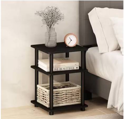 Compact black nightstands, lightweight and easy to assemble/disassemble. Two available.