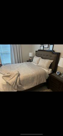 Furniture basically in new condition. MATTRESS NOT INCLUDED 2 night stands with plugs on the back. Queen size headboard and frame. Tv stand and tv.