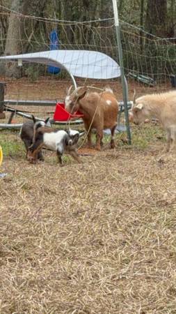 $100 each. (NONE OF THE BABIES IN THE PICTURES ARE AVAY) Brown doe produces multiples every pregnancy. White girls are first time mommas, one gave me a single huge buckling and the other gave me 2 exact replicas of herself, all white does. Blonde girl has had 1 pregnancy with me, don’t have a history prior to that, she had 2 babies. They’re all around 2-3 years old.