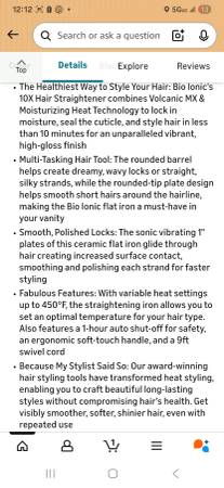 Bio Ionic 10X Styling Iron, 1" Hair Straightener with Moisturizing Heat Technology, Flat Iron for 10-Minute Styling, Hair Straightener and Curler please text if possible