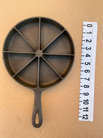 Vintage 9 inch round cast iron divided eight wedge cornbread skillet.
