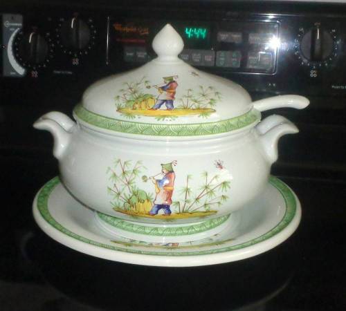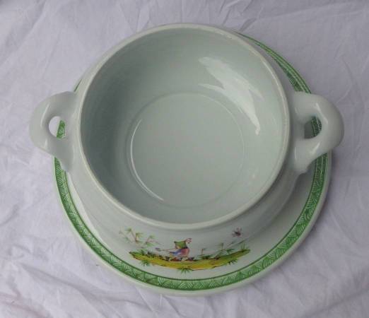TUREEN BOWL - small paint chips along rim and handle, 11" round