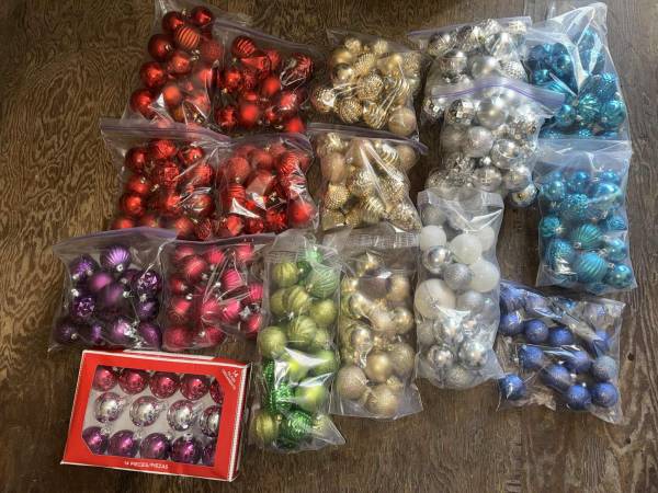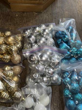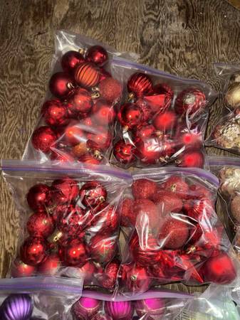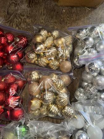 Like new each bag is $5 comes with about 20-25 ornaments (glitter,different designs) in a bag some have more. Most of them have ornament hangers attached.
