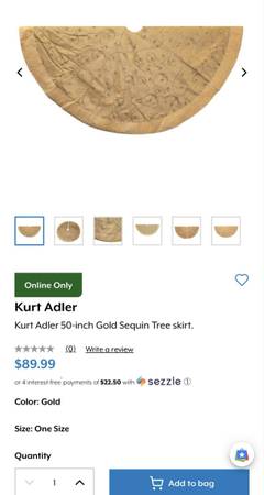 Compliment your Christmas tree with this beautiful 50-inch gold sequin tree skirt from Kurt Adler. The gold tree skirt features gold sinuous sequin designs. Web ID: P000730546 Polyester Spot Clean...