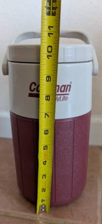 Vintage Coleman Polylite Jug. Rarely/hardly used. The unit is pretty light and can hold cold/hot water for few hours. Has drinking sprout. 10"x6" Awesome unit for picnic or hiking as it's pretty...