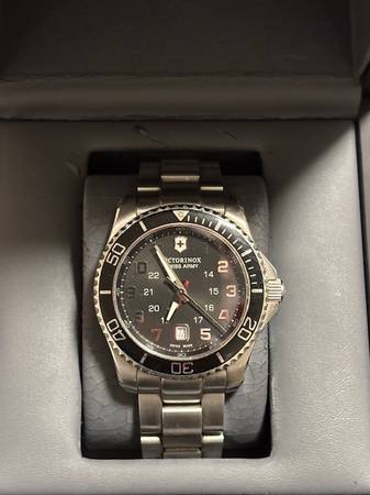 Victorinox Swiss Army watch in good condition. Includes original box and papers and has new battery. Model #241436, this model has been discontinued so they will be hard to find, went for $500 new...
