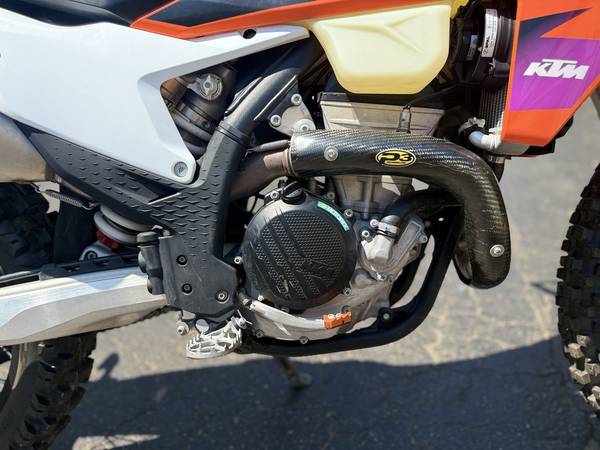 Light, compact, and weighing only 63 lb (28.8 kg), the KTM 350 EXC-F engine is an outstanding bit of engineering. For 2024, the engine is tilted 2° backward with a repositioned sprocket for an improved center of gravity, while its high-revving power intelligent low friction design, provide the goods at every twist of the throttle.