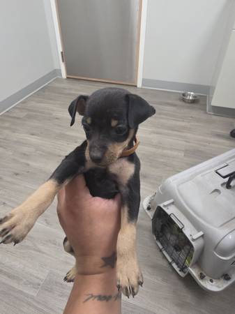 Full bred Miniature Pinscher puppy. 7 weeks old. First round of shot, heart guard plus, fecal, and heartworm test done. All test been clear. Have paperwork. Rehoming fee applies