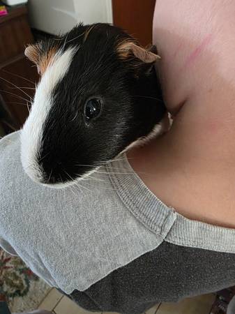 A tri colored male 1y/o guinea pig. Super friendly with people, children, even cats and dogs. We are wanting to find him a happier situation than being alone most of the time.