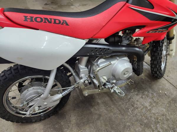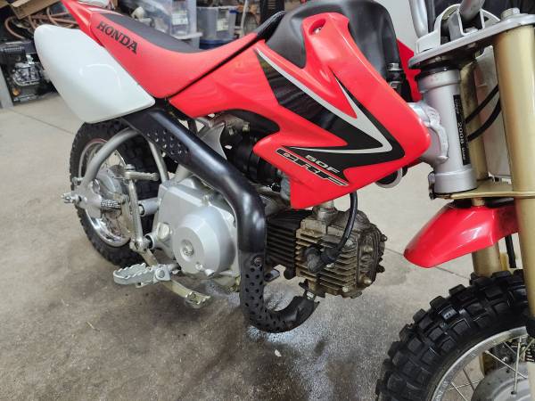 This crf50f with original title. It needs nothing, near factory perfect, was riden very little at grandparents house, very low hours. Starts right up no smoke. Perfect for any kid or big kid collector.