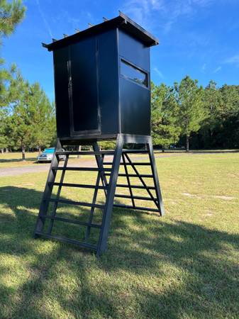 4x5 Aluminum Framed Deer Blind. Built with recycled aluminum, aluminum composite siding, flip up windows, 5'shelf inside. Sits on a 6' tall aluminum stand (also built with recycled aluminum). Same...