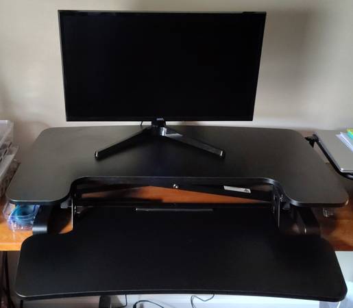Computer Monitor and Stand-up desk. Reduced $60.00 Cash - Pick-up only. Great condition. Like new, stand up desk is height adjustable. Meant to go on top of existing desk or tabletop. Desk will hold 2, 22" monitors at an angle. Removable keyboard shelf if not needed.