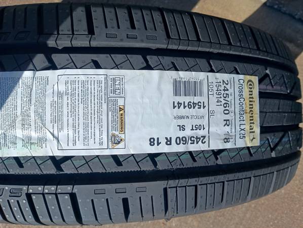 Hey I have a brand new set of 245 60 18 Continental CrossContact LX25 tires. These were supposed to go on my Ford Edge, but they were delayed in shipping, so I bought a set of Generals which is a similar tire and was readily available at the time. These were $235 a piece new. You can save money on this set. Cash talks. If you have any questions, feel free to ask. These are located in Thomasville, but I'm in Tallahassee and Crawfordville weekly if you'd like to meet up somewhere. These are a stock size for a Ford Edge and Honda Pilots, some Hyunda Sante Fe suvs as well as a few other vehicles.